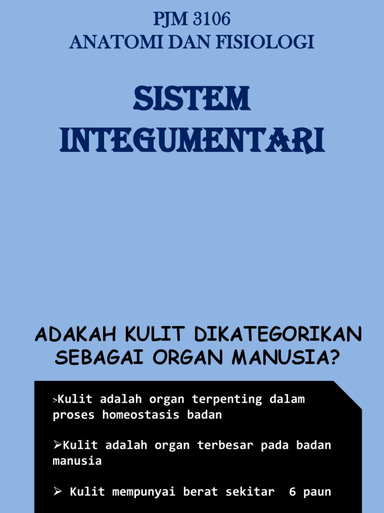 Fungsi kelenjar minyak adalah melepaskan sebum (minyak) ke folikel rambut serta melapisi dan melindungi batang rambut agar tetap lembap. Epidermis terdiri atas jutaan sel kulit yang diikat oleh lipid. Epidermis membangun pelindung yang kuat dan mengatur volume air yang dilepaskan dari tubuh anda. Epidermis adalah lapisan terluar kulit. Perlindungan lapisan epidermis atau lapisan terkematu merupakan lapisan perlindungan daripada kemasukan. Merupakan sel dimana berisi dari epidermis normal dengan pertumbuhan khusus ke arah dalam, serta sel berisi kristal kalsium karbonat dimana disebut juga dengan sistolit. Bagian kulit yang tebal (telapak tangan dan kaki) memiliki ketebalan berkisar antara 400 hingga 600 µm. Epidermis merupakan lapisan kulit yang paling luar. Lapisan kulit yang paling luar. Secara anatomis, lapisan epidermis kulit terdiri atas stratum korneum, stratum lusidum, stratum granulosum, stratum spinosum, dan stratum basale. Kerak samudra lebih tipis dari kerak benua karena usianya yang relatif lebih muda. Epidermis sebagai lapisan terluar pada kulit memiliki fungsi yang cukup banyak. Fungsi kulit antara fungsi kulit ialah: